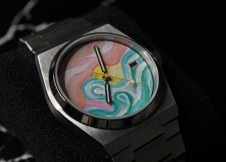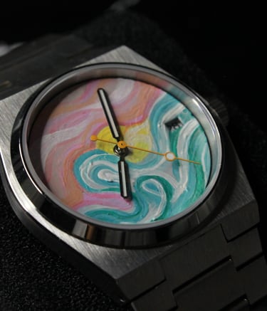 AVOCARTE, inspired by their imagination and the natural world, paints the intricate dials of watches, transforming blank canvases into stunning visual stories. Meanwhile, our skilled watchmaker meticulously constructs the timepiece, combining craftsmanship with artistic flair.